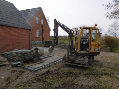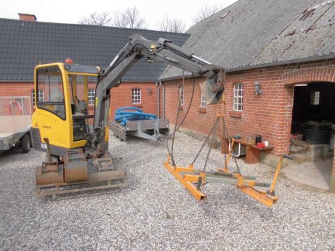 Volvo EC20D 2 ton minigraver med 100 cm tiltskovl, div skovle fra 20 til 80 cm, grubbetand, 60 cm risteskovl, 130 cm planerplanke, kantskære, pallegafler, kost, rive og 80 cm Fræser. Træklipper