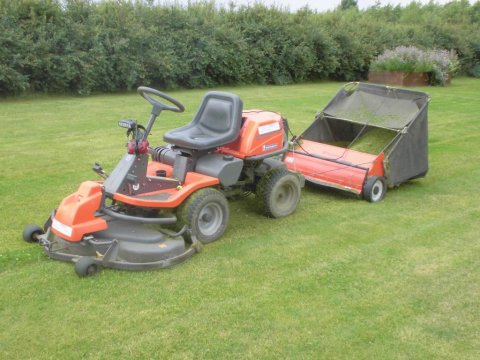 Husqvarna 15v2 ride græsslåmaskine 112cm og kost 100cm og div ting.